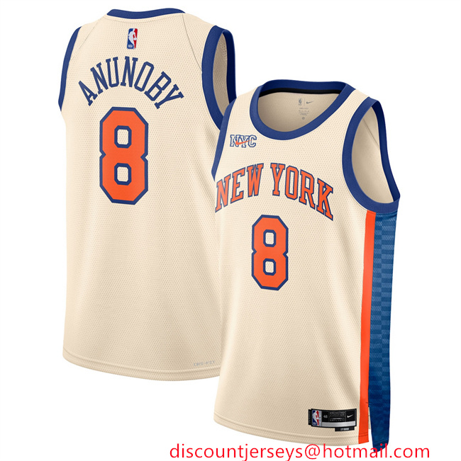 Men's New Yok Knicks #8 OG Anunoby Cream 2025 26 City Edition Stitched Basketball Jersey