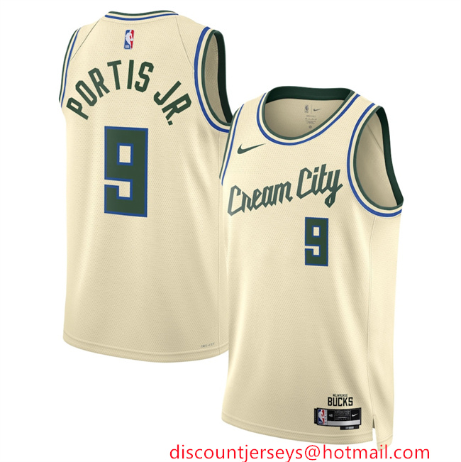 Men's Milwaukee Bucks #9 Bobby Portis Cream 2025 26 City Edition Stitched Basketball Jersey
