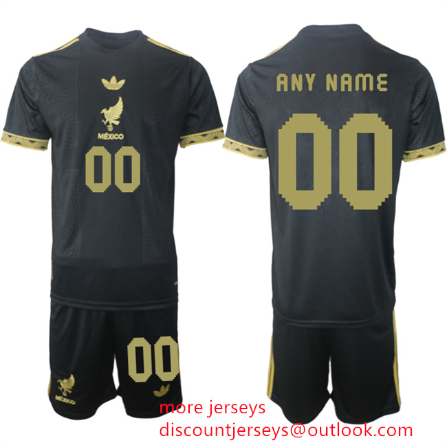 Men's Mexico Custom Black Gold 25 26 Soccer Jersey Suit