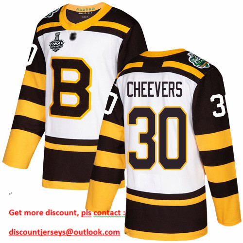 Bruins #30 Gerry Cheevers White Authentic 2019 Winter Classic Stanley Cup Final Bound Stitched Hockey Jersey