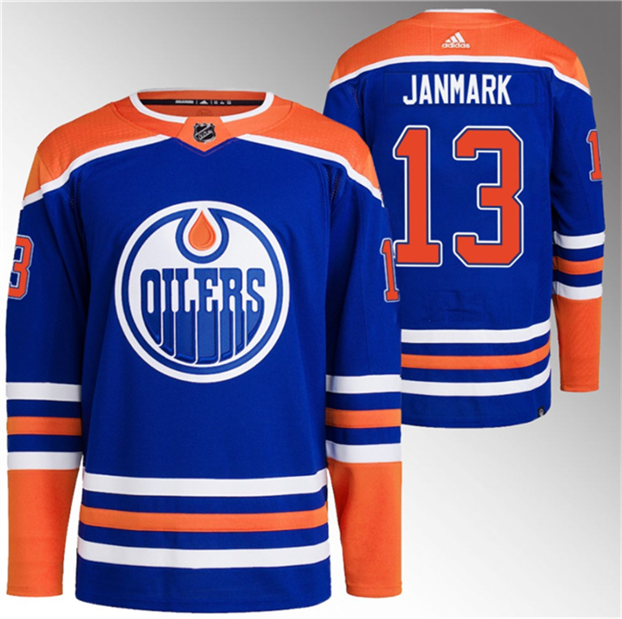 Men's Edmonton Oilers #13 Mattias Janmark Royal Stitched Jersey