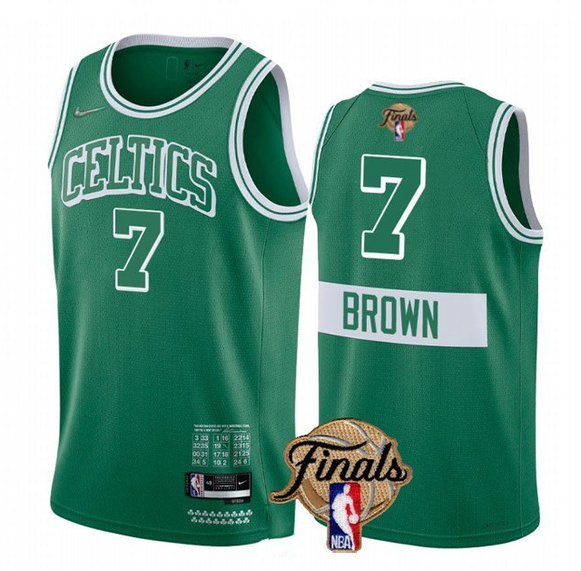 Men's Boston Celtics #7 Jaylen Brown 2022 Green NBA Finals Stitched Jersey