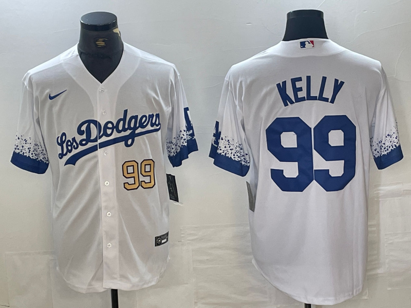 Men's Los Angeles Dodgers #99 Joe Kelly White Cool Base Stitched Baseball Jersey 9