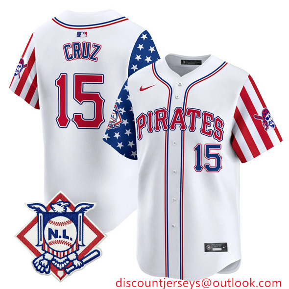 Men's Pittsburgh Pirates #15 Oneil Cruz White 2024 Fourth of July Vapor Limited Stitched Baseball Jersey