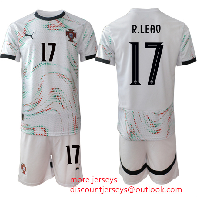 Men's Portugal Team #17 Rafael Le?o 2025 White Away Soccer Jersey Suit