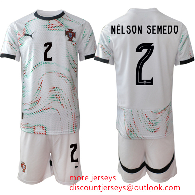 Men's Portugal Team #2 Nélson Semedo 2025 White Away Soccer Jersey Suit