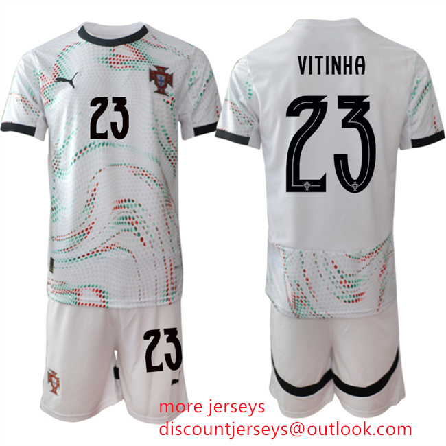 Men's Portugal Team #23 Vitinha 2025 White Away Soccer Jersey Suit