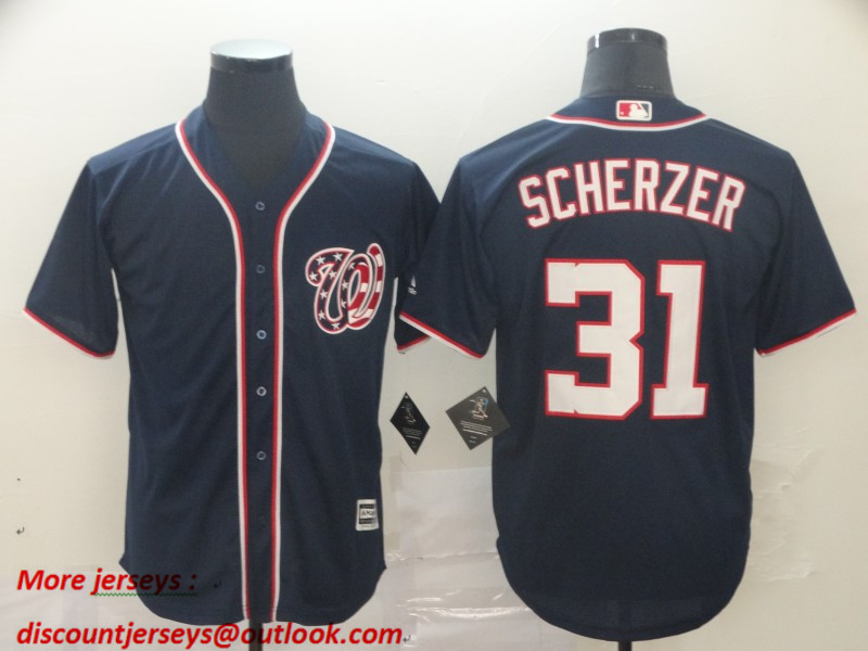 Nationals 31 Max Scherzer Navy Cool Base Jersey