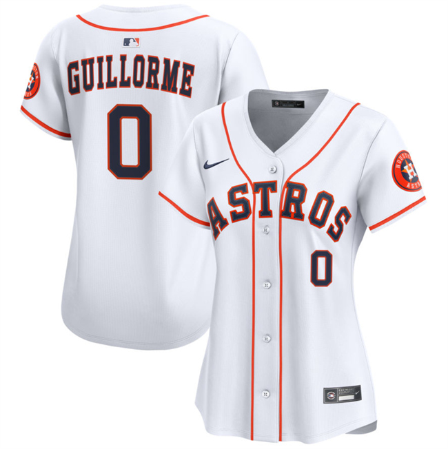 Women's Houston Astros #0 Luis Guillorme White Home Limited Stitched Baseball Jersey(Run Small) 001