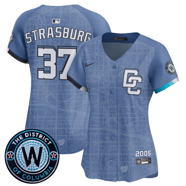 Women's Washington Nationals #37 Stephen Strasburg Blue 2025 City Connect Limited Stitched Baseball Jersey(Run Small)