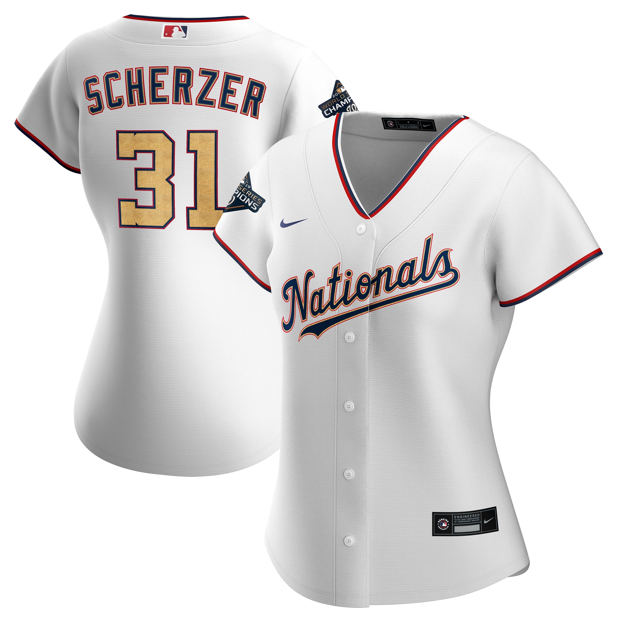 Women Nationals 31 Max Scherzer White Gold Women Nike 2020 Gold Program Cool Base Jersey