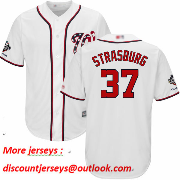 Nationals #37 Stephen Strasburg White Cool Base 2019 World Series Champions Stitched Youth Baseball Jersey
