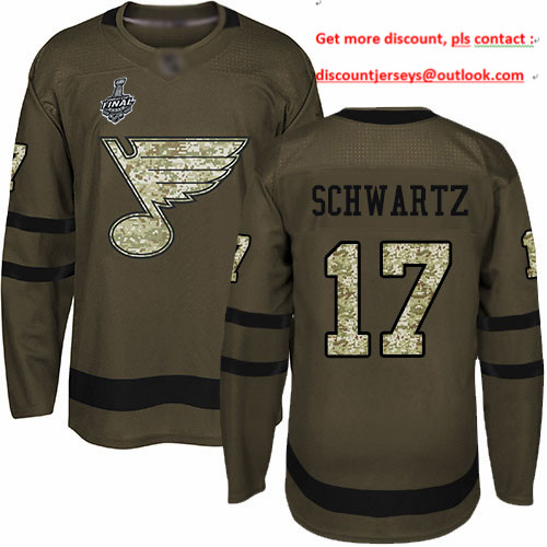 Blues #17 Jaden Schwartz Green Salute to Service Stanley Cup Final Bound Stitched Youth Hockey Jersey
