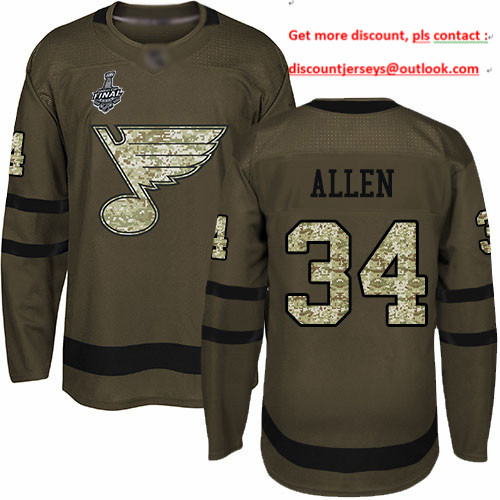 Blues #34 Jake Allen Green Salute to Service Stanley Cup Final Bound Stitched Youth Hockey Jersey