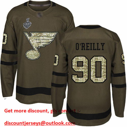 Blues #90 Ryan O'Reilly Green Salute to Service Stanley Cup Final Bound Stitched Youth Hockey Jersey