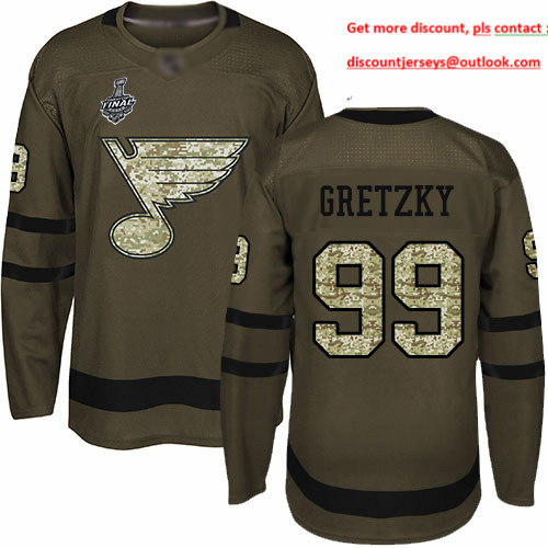 Blues #99 Wayne Gretzky Green Salute to Service Stanley Cup Final Bound Stitched Youth Hockey Jersey