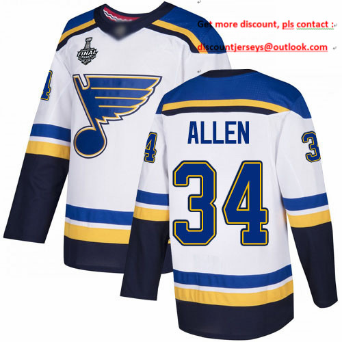 Blues #34 Jake Allen White Road Authentic Stanley Cup Final Bound Stitched Youth Hockey Jersey