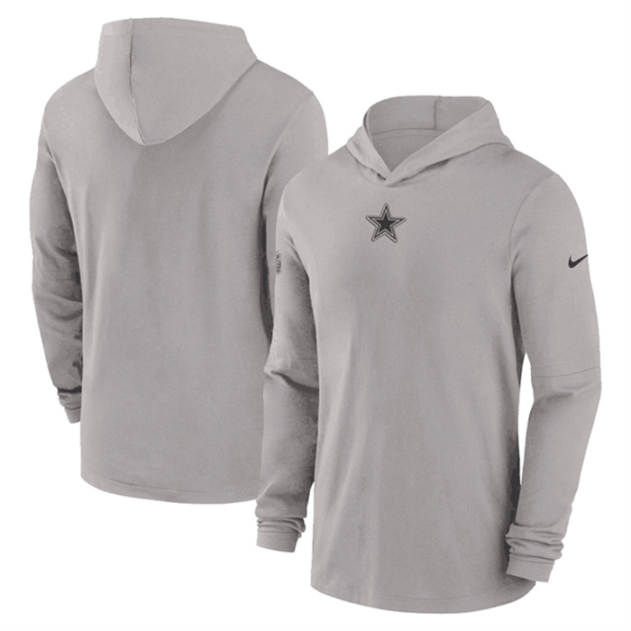 Men's Dallas Cowboys Grey Sideline Performance Long Sleeve Hoodie T-Shirt