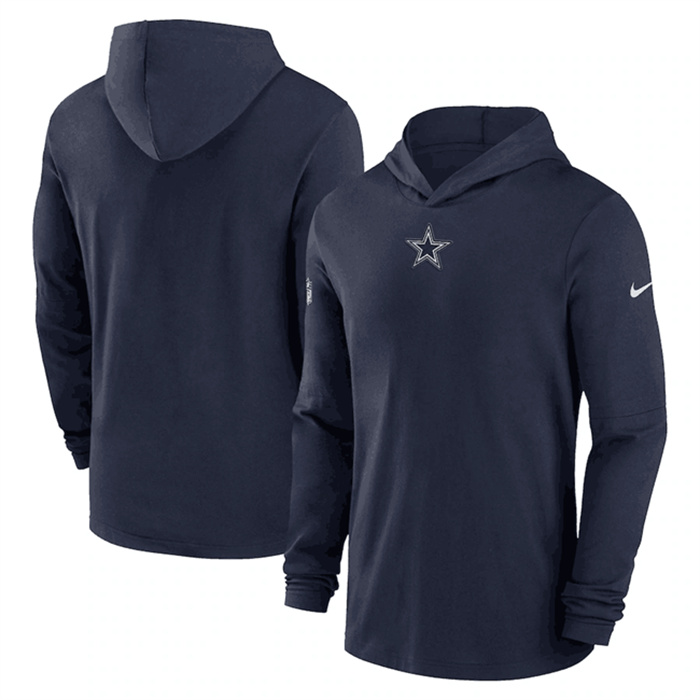 Men's Dallas Cowboys Navy Sideline Performance Long Sleeve Hoodie T-Shirt