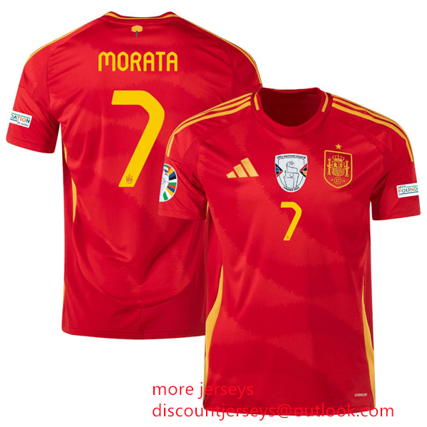 Men's Spain Team #7 Alvaro Morata Yellow 2024 Away Soccer Jersey